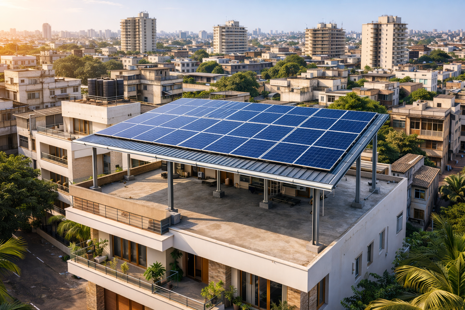 Rooftop solar is installed on building roofs and is ideal where space is limited.